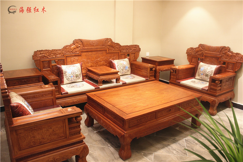 此實拍的寶馬沙發(fā)紅木家具圖片為7件套的,適合小戶家庭客廳擺放。