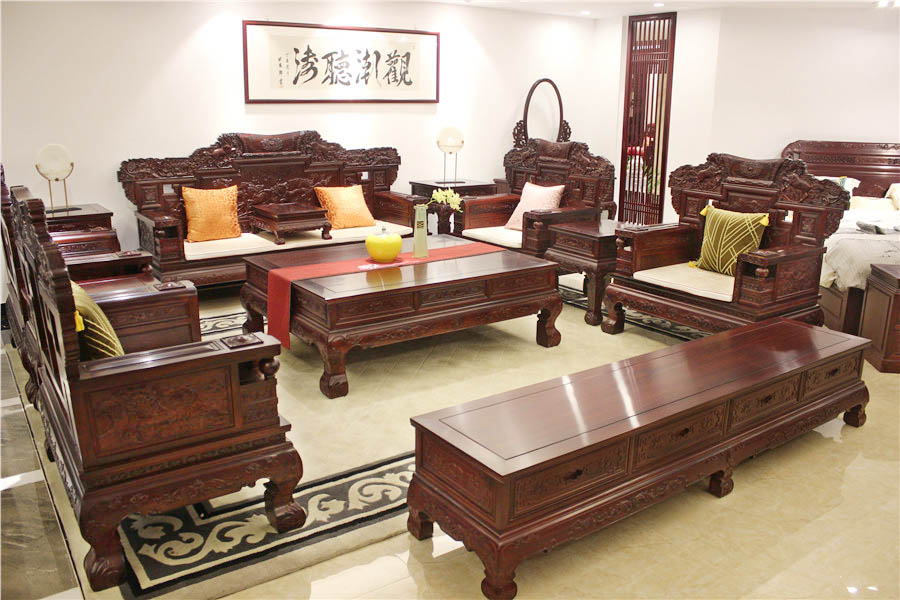 名稱:寶馬沙發十一件套材質:紅酸枝/東非酸枝尺寸:三人位218*66*39*121cm/單人位106*66*39*115cm/大平幾148*118*51cm/高花幾55*55*75cm/高幾58*50*60cm/小炕幾55*40*22cm點滴古韻成就東方魅力 創新民族人文家具,回歸自然精美小巧的炕幾,實用性與美觀性集于一體,它既能單獨使用又能放在仨人沙發上,方便生活。[八駿圖] ?精雕細