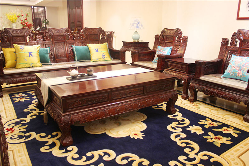 名稱:彪云一號十件套木材:老撾紅酸枝/東非酸枝尺寸:三人位2566239112cm/單人位956239112cm/大平幾14811850/高花幾464682cm/高幾585259cm面板經(jīng)過刮磨以及多層打磨工藝,光滑細膩,透明生漆凸顯木紋美觀。面板寬厚,精雕細刻,結構流暢,家具整體霸氣而不失優(yōu)雅。主框架采用實木打造,根據(jù)人體學原理打造最舒適弧度,清晰自然姿態(tài)優(yōu)雅,轉角打磨光滑,在簡單中不失優(yōu)雅。精