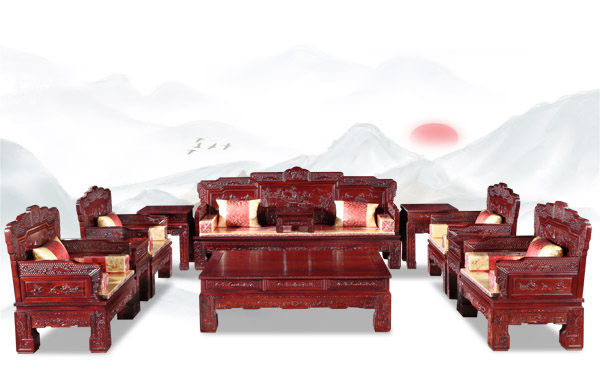 名稱:漢宮春曉沙發 11件套 材質:紅酸枝 / 東非酸枝