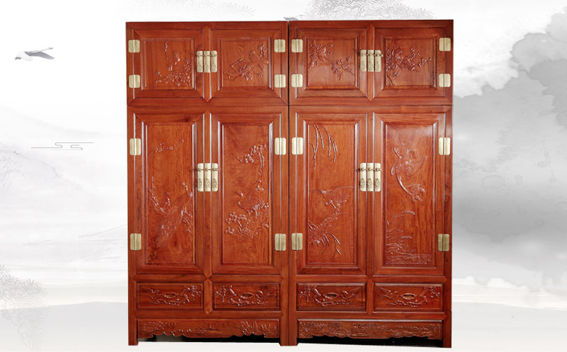 檀雕花鳥(niǎo)頂箱柜緬甸花梨木尺寸:232*60*235cm